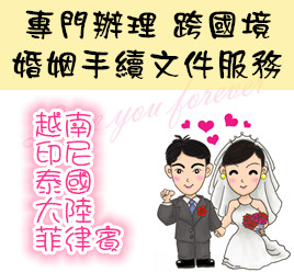取得必要文件: 根據您所在地的法律,您可能需要取得一些必要的文件,例如身分證、出生證明、未婚證明、離婚或喪偶證明(如果適用)等。如果您的新娘是越南公民,可能需要處理相應的移民文件。